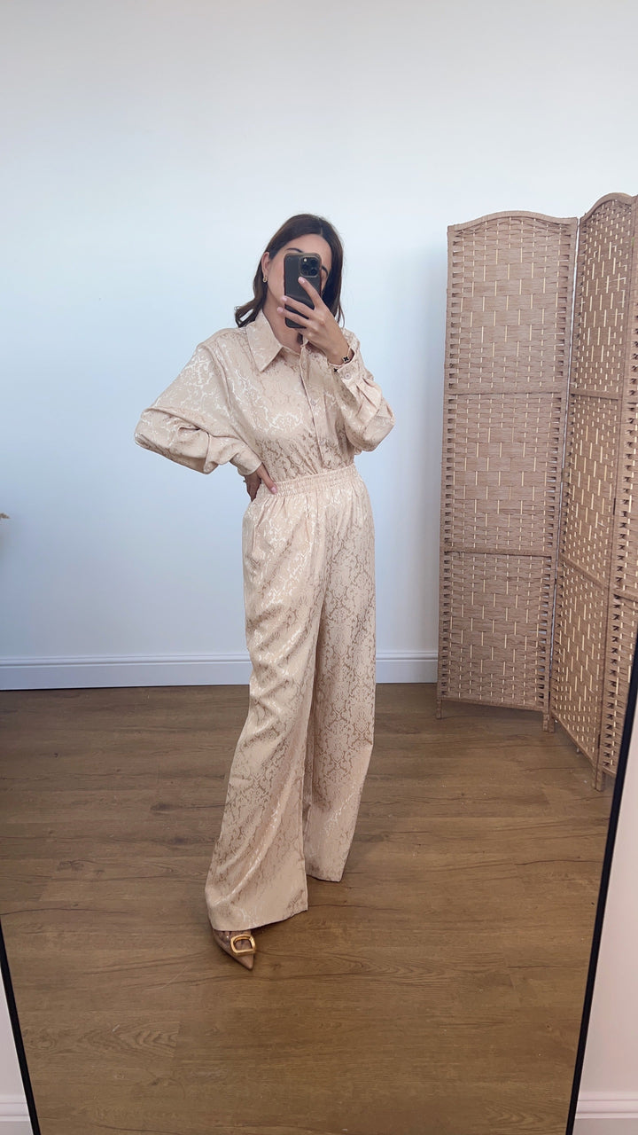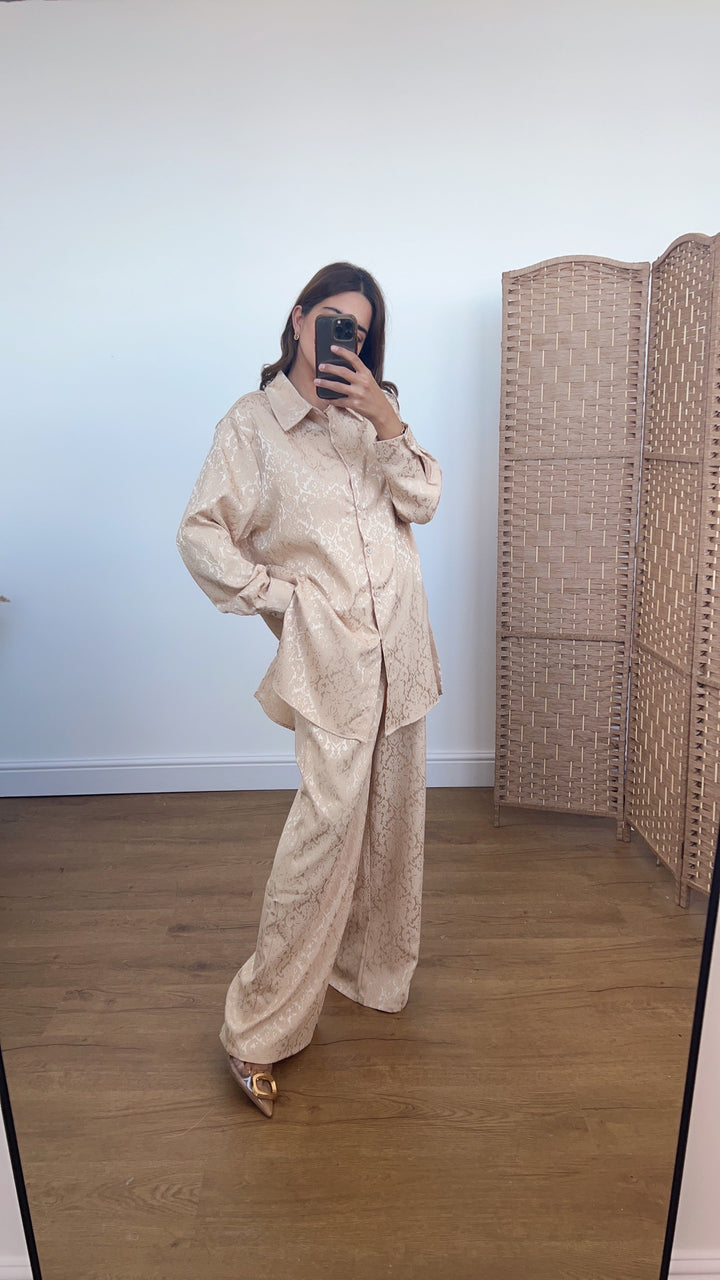 Beautiful coord featuring a button down shirt and trousers with an elasticated waist